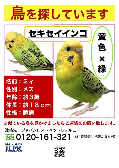 タイトル:黄色と緑のセキセイインコを探しています。
