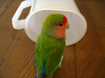 そうですね。想定内のこととして事故のないよう注意が必要ですね。 うちのコザクラは小さい時からおもちゃを破壊したり電気コードを齧ることはなかったのに (ブランコや餌入れ落しは常習犯でしたが) 8歳の時に初めて1度だけですがFAXの線を裏側で齧っていたことがありました。 今は年齢的に発情が落ち着いた分、別のこと、自分が気に入ったことに執着するようになり その時々で変わるのですが(夏は氷涼み、秋は冷茶ポット揺らしでした) ペットボトルも今のマイブームになっているのでカバーをしたり お湯の温度を下げたりして気をつけたいと思います。 写真は冷茶ポット遊びで、縁を嘴で持ち上げて落とし、 楕円形のポットが左右に揺れている間に中に入り込む遊びです。 ポットを倒すことから自分で考えた(?)遊びなので鳥って本当に面白いと思います。