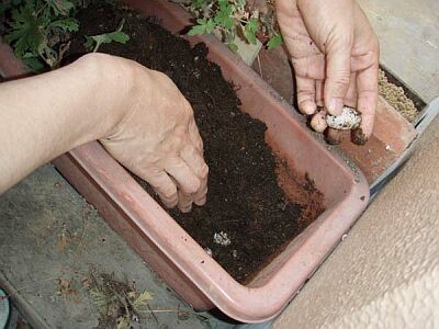 娘の保育園から借りてきたクサガメが昨夜(〜今朝未明?) とうとう産卵しましたー! 私が用意した産卵床は気に入らなかったようで(^^; フェンス代わりに置いていた植物プランターによじ登って、 そこの地面を掘り返してました。さすが脱走上手なクサガメって感じ。 それにしても、本当にかなり深くまで穴を掘るんですね〜。 プランターに11個、その他に水場で2個産んでいまして、 水中のはカメが自分で喰っちゃいました。 プラケ2つに水苔を敷いて6個を自宅、5個を保育園に持って行きました。 さてさてどうなりますか?うまくいったらのお楽しみですね。 (でも根本的な問題として交尾を確認していませんからー!?)