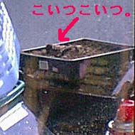 先週末、留守中のGO(仮名)さん宅のベランダに 土が撒き散らされるという事件が発生した。 この土は休耕中のプランターのもので、 ほどよく乾燥したサラサラ状態のモノとわかった。 誰が何の目的でマンション5階のベランダに、 どうやって侵入したのか? GO(仮名)さんは首をひねるばかりであったが、 蒼牡丹のお久美(仮名)さんは 「ホシは現場に必ず帰ってくる」と断言。 言葉どおり再び現われた犯人の撮影に成功した。 犯人は盗撮されていることに気付かないまま ゆうゆうと土浴びに興じ現場を飛び去った。 犯人はスズメ(住所不定、年齢不祥、雌雄不明、職業スズメ) であることが判明した。 |
